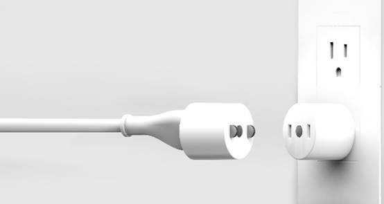 TUG 是个外型简约的两件式插头,一端在墙上,另一端插在你要插入的电源线末端,而之间则利用强磁铁吸附连接,使你即使不小心绊倒电线后也能快速断开插头与电源线。